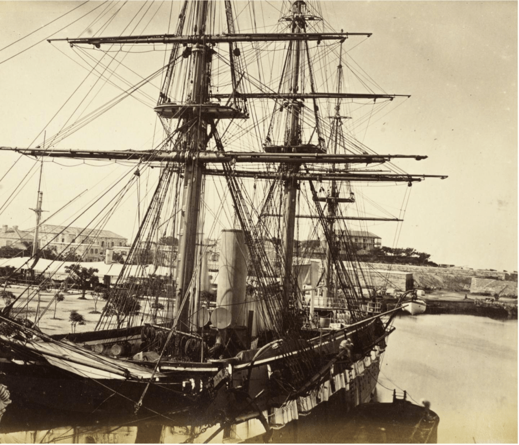 HMS Challenger at the naval base at Bermuda, West Indies, taken by Caleb Newbold (ALB0174)