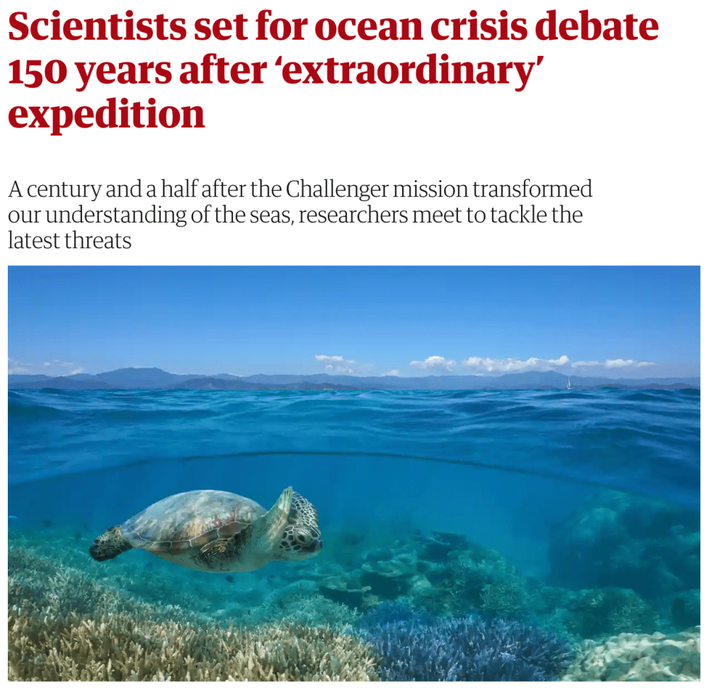 ‘Scientists set for ocean crisis debate 150 years after “extraordinary” expedition’ by Science Editor Robin McKie.